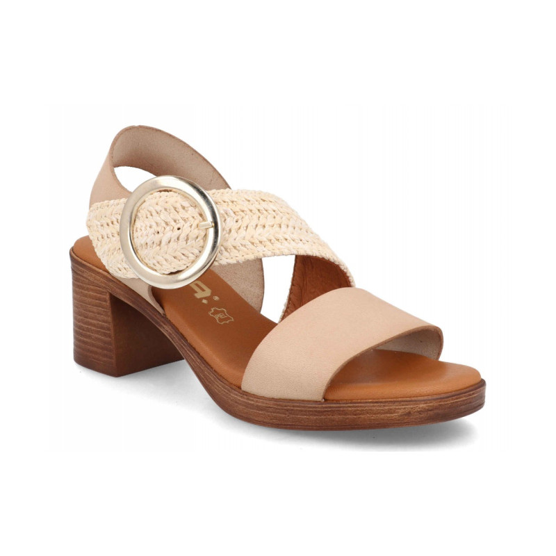 Breided leather sandal, with two straps, platform, wide heel. Buckle fastener. Very comfortable leather insole.