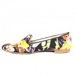 Zapato de plano de raso con dibujos de flores, suela de goma antideslizante