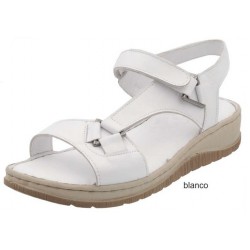 48HORAS 4302 Sandalia de piel suave tiras, con cuña media, cierre de velcro, plantilla confort