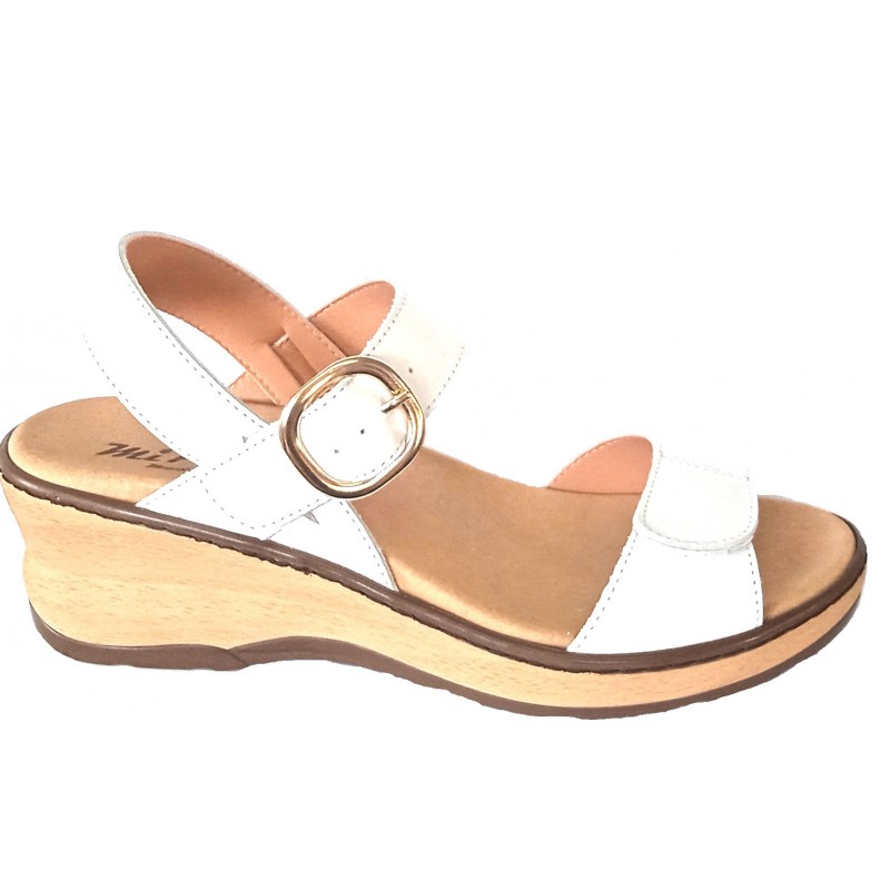 Sandalia de piel con cuña