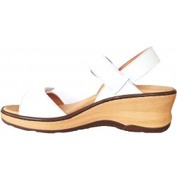 Sandalia de piel blanco, cierre de hebilla y velcro.