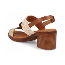 Sandalia de piel lisa y trenzada, con la planta acolchada de piel. Modelo de plataforma, con tacón ancho.