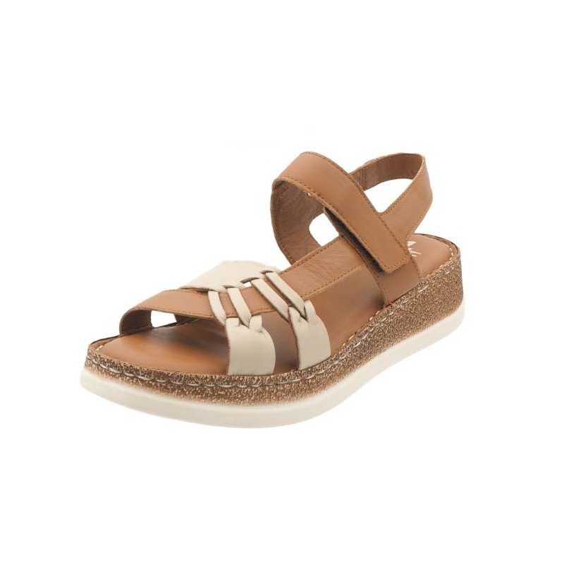 Sandalia de piel con cuña baja para mujer, con suela de goma.